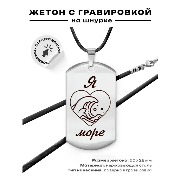 Амулет-жетон с гравировкой на тему моря. Изготовлен из полированной нержавеющей стали.