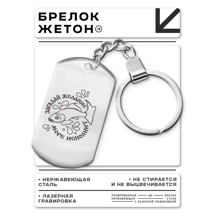 Брелок-жетон из полированной нержавеющей стали с гравировкой.