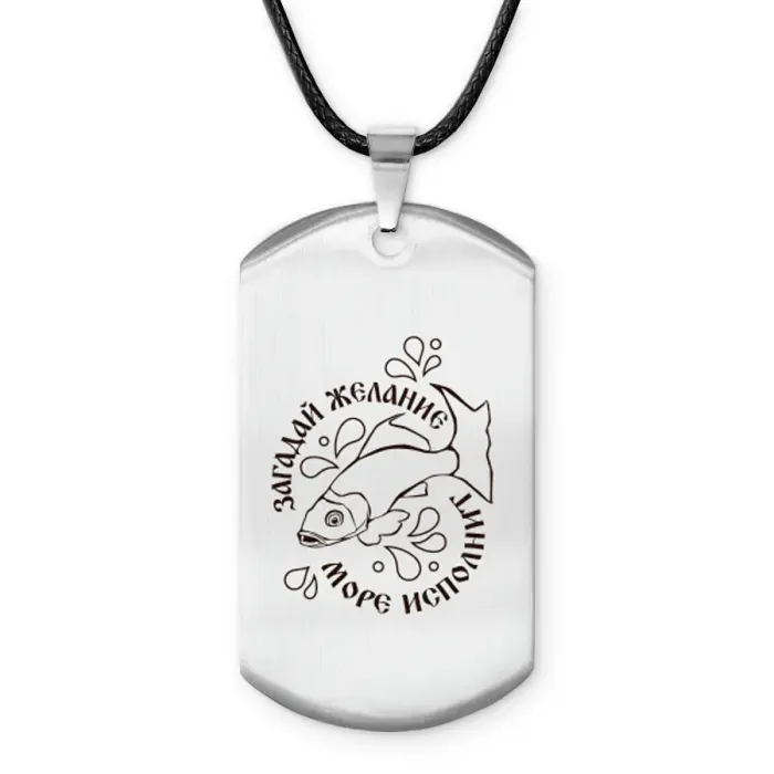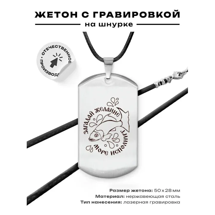 Амулет-жетон «Загадай желание» из полированной нержавеющей стали с гравировкой.