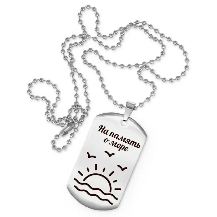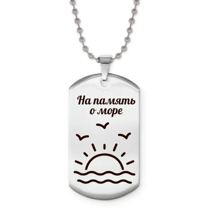 Жетон на цепочке «На память о море» — сувенирный аксессуар из полированной нержавеющей стали с односторонней гравировкой.