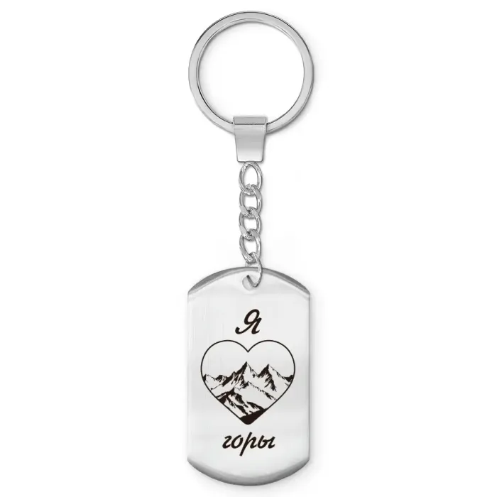 Брелок-жетон «Я люблю горы» — сувенирный аксессуар из нержавеющей стали с гравировкой изображения.