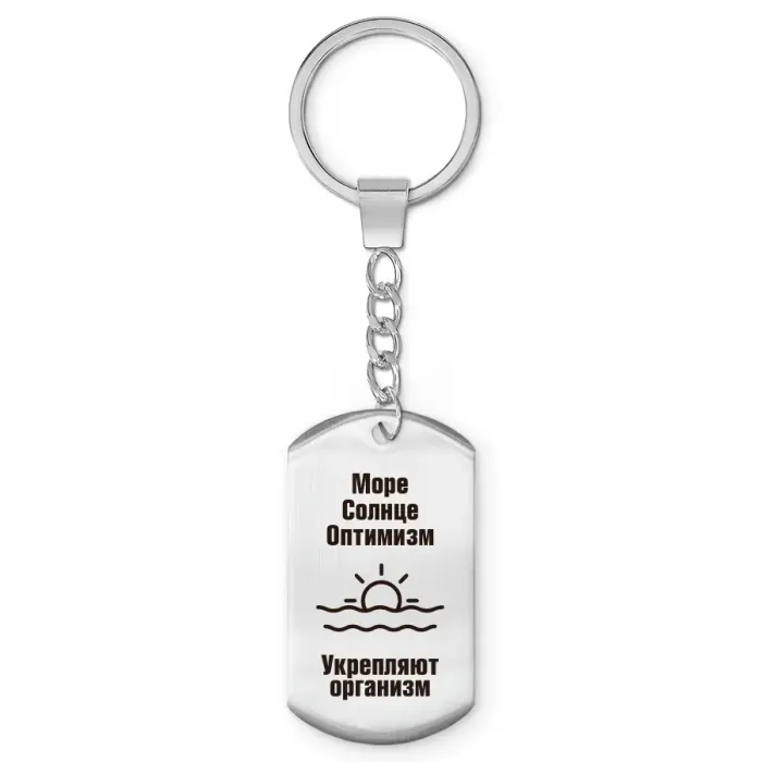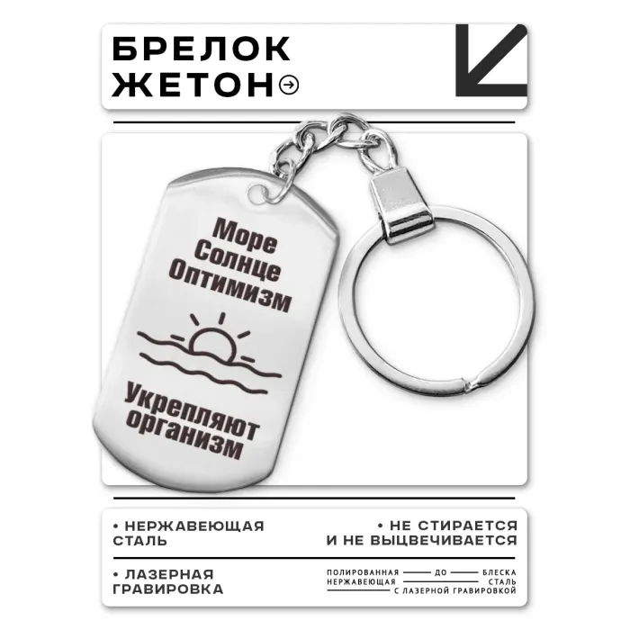 Брелок-жетон из полированной нержавеющей стали с гравировкой изображения.