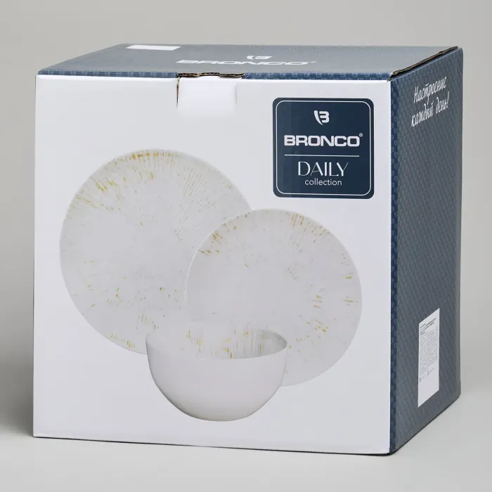 Обеденный набор на 4 персоны серии Daily от бренда Bronco предназначен для сервировки стола. Набор из 12 предметов выполнен из фарфора в горчичном цвете.
