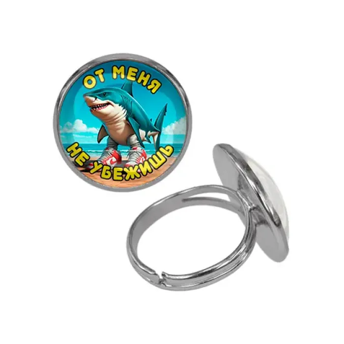 Металлическое кольцо с изображением под выпуклой стеклянной линзой.