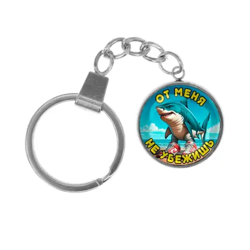 Брелок из нержавеющей стали с кулоном под стеклянной линзой и кольцом для ключей.