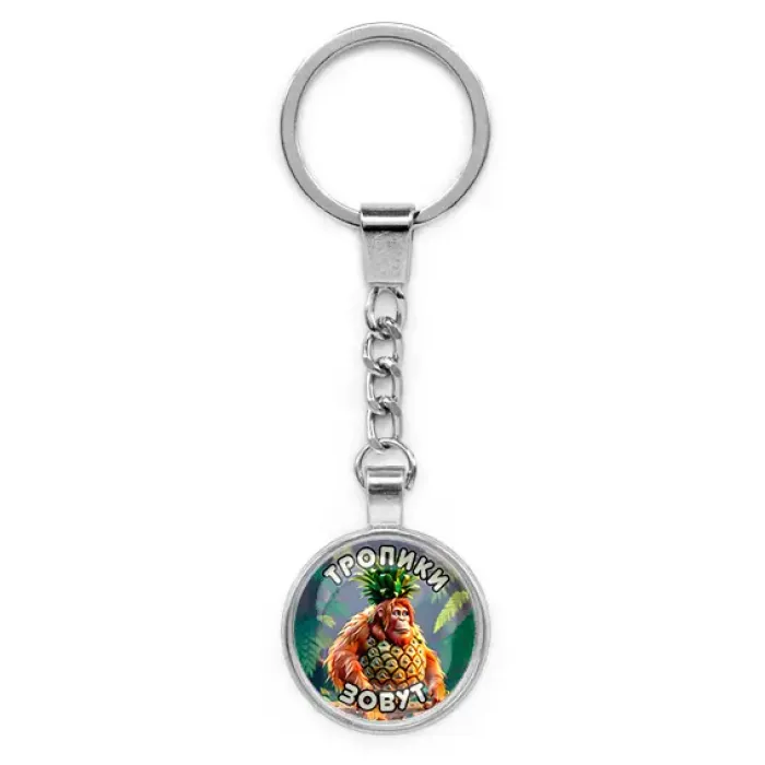 Круглый брелок, цвет серебро, с цепочкой, Орангутини Ананасини M0102022