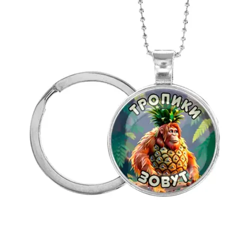 Кулон-брелок, цвет серебро, с цепочкой и кольцом, Орангутини Ананасини M0102054