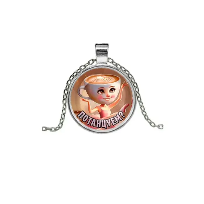 Кулон из бижутерного сплава с изображением балерины под выпуклой стеклянной линзой.