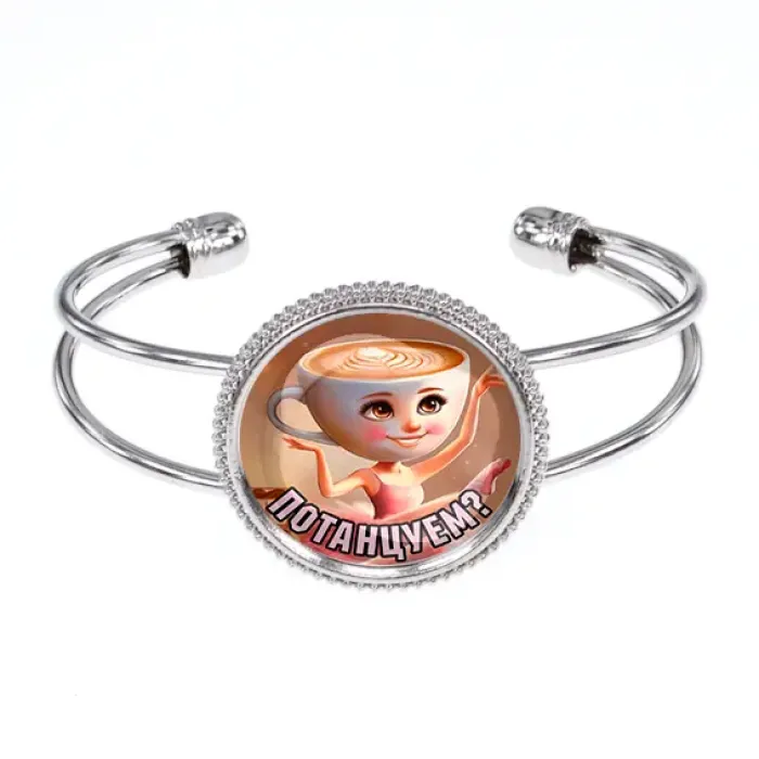 Браслет из бижутерного сплава с изображением балерины под выпуклой стеклянной линзой.