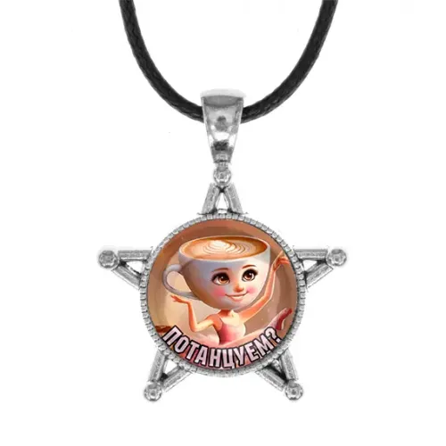Сувенирный кулон в форме звезды с изображением балерины. Материал: бижутерный сплав под серебро и стекло.