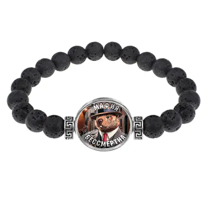 Стрейч-браслет из натуральной лавы с декоративным элементом под стеклянной линзой.