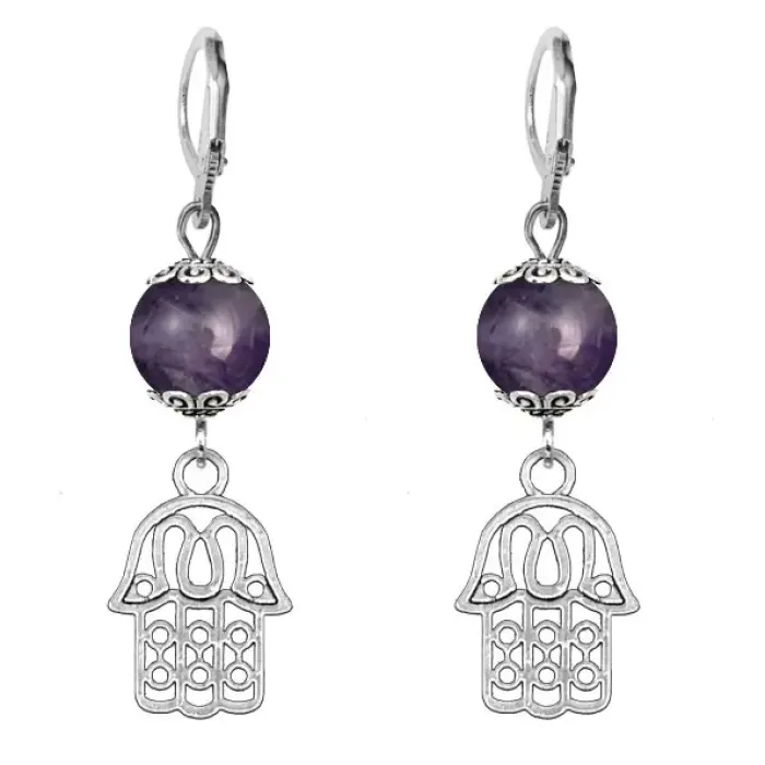 Серьги-амулеты Хамса (от сглаза и зла), аметист SE-MKA21-01