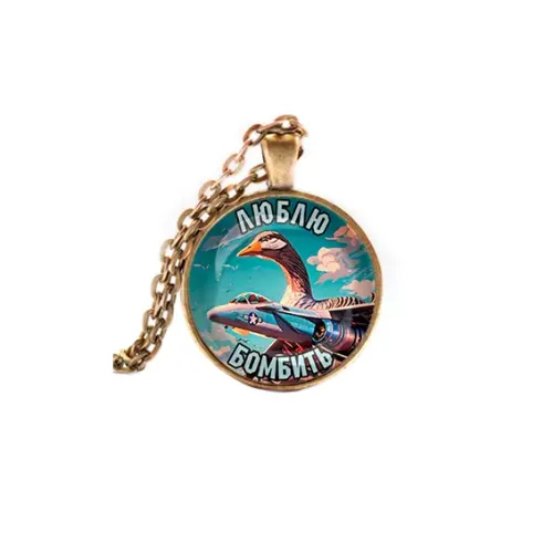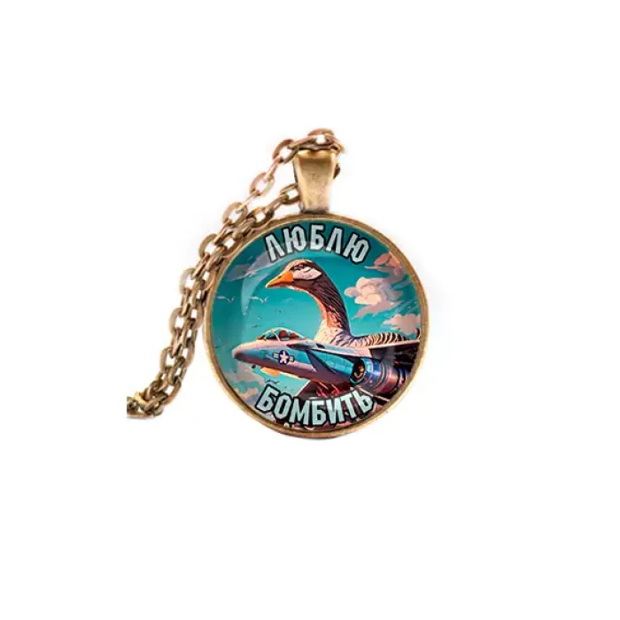 Кулон из бижутерного сплава в цвете бронза с цепочкой и изображением под стеклянной линзой.