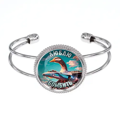 Браслет из бижутерного сплава с декоративным элементом под стеклянной линзой.