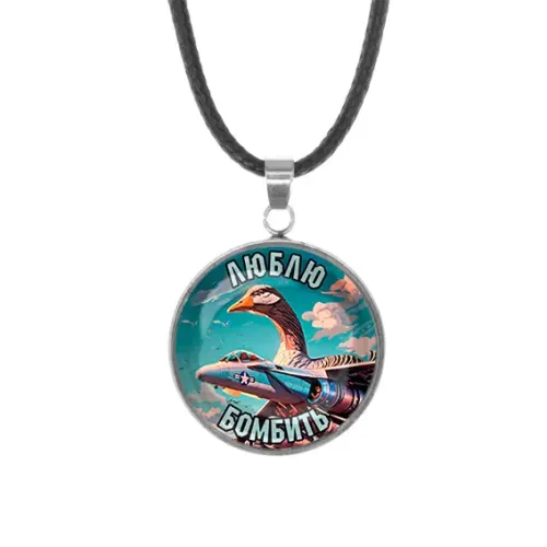 Кулон-амулет из нержавеющей стали со шнурком. Изображение защищено выпуклой стеклянной линзой.