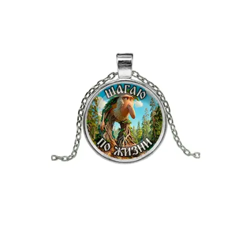 Кулон из бижутерного сплава в серебристом цвете с изображением, защищённым стеклянной линзой.