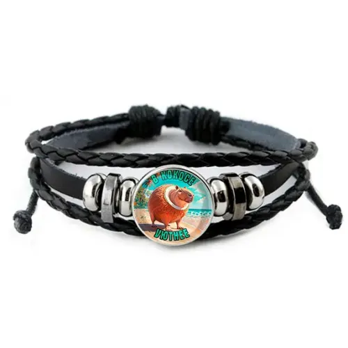 Кожаный браслет с декоративным элементом под стеклянной линзой.