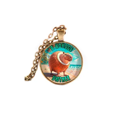 Кулон из бижутерного сплава с покрытием под бронзу и стеклянной линзой. Модель «Капиборело Кококсини».