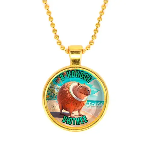 Кулон из бижутерного сплава с золотым покрытием и стеклянной линзой. Комплектуется цепочкой.