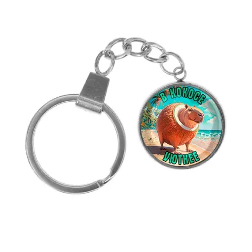 Брелок для ключей из нержавеющей стали с декоративным кулоном под стеклянной линзой.