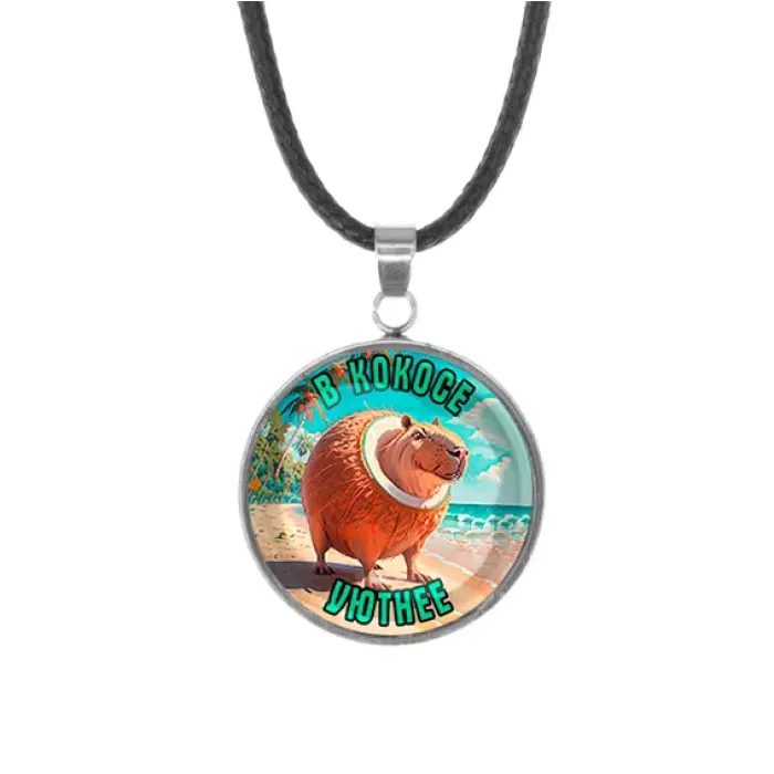 Кулон-амулет из нержавеющей стали с изображением под стеклянной линзой.