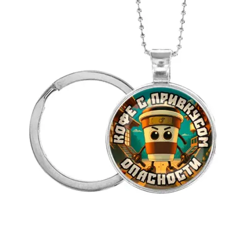 Размеры и комплектация: Диаметр кулона 28 мм. Длина цепочки 49 см, регулируется. В комплекте кольцо для использования в качестве брелка.
