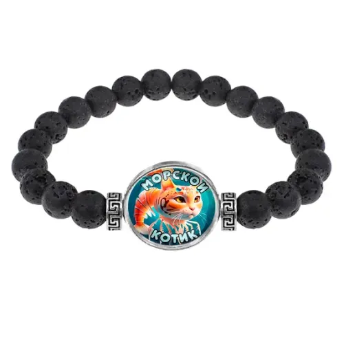Стрейч-браслет из натуральной лавы диаметром 8 мм с изображением под выпуклой стеклянной линзой.