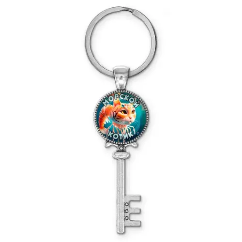 Брелок-ключ из бижутерного сплава с серебристым покрытием и защитным стеклом.