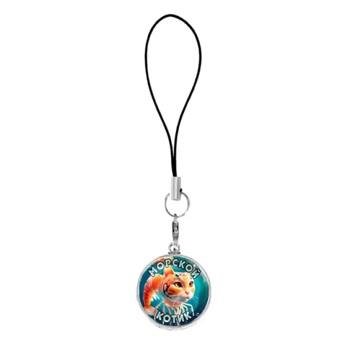 Подвеска для телефона из бижутерного сплава под серебро с изображением под выпуклой стеклянной линзой.