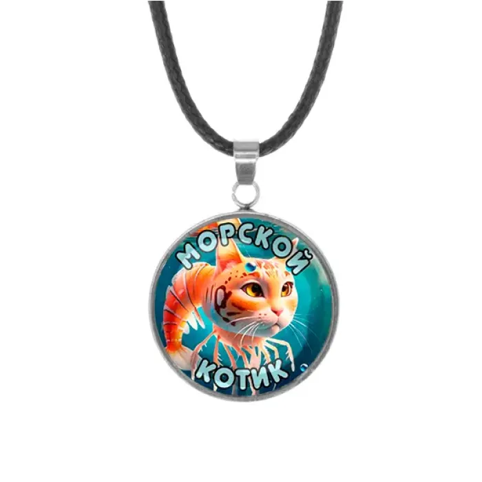 Кулон-амулет из нержавеющей стали с изображением под выпуклой стеклянной линзой.