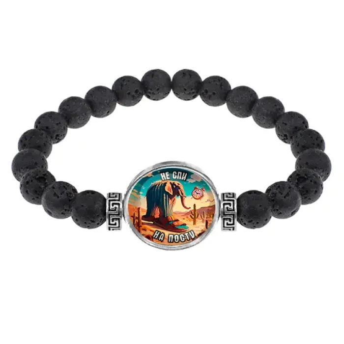 Стрейч-браслет из натуральной лавы с изображением под выпуклой стеклянной линзой.