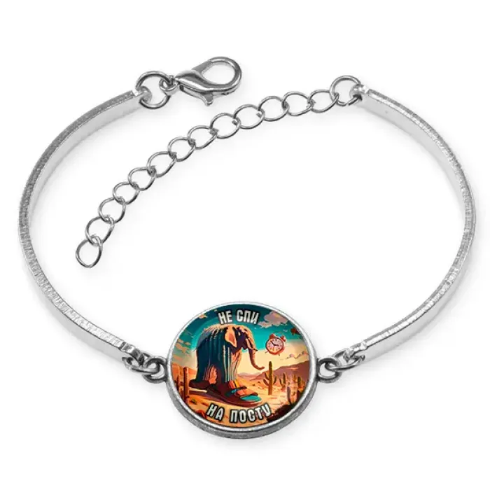 Браслет из бижутерного сплава с декоративным элементом под стеклянной линзой.