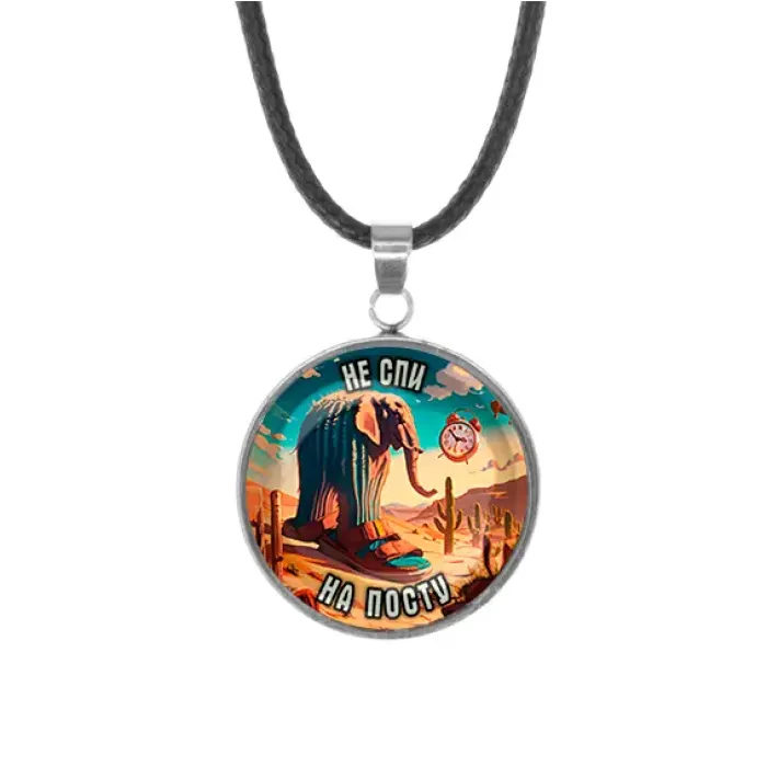 Кулон из нержавеющей стали со шнурком. Изображение расположено под выпуклой стеклянной линзой.