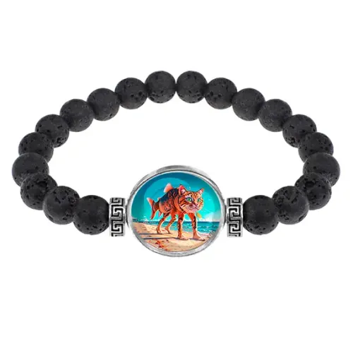 Стрейч-браслет из натуральной лавы с изображением под выпуклой стеклянной линзой.
