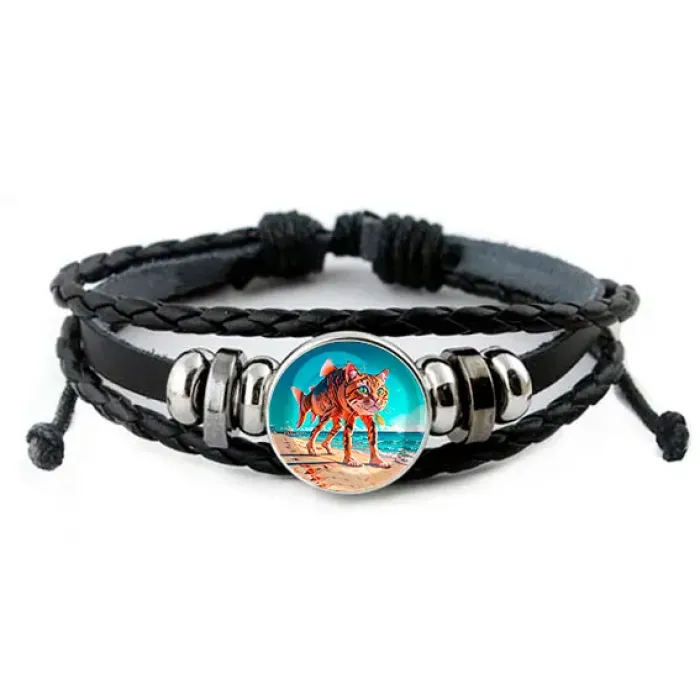 Кожаный браслет из искусственной кожи с декоративным элементом под стеклянной линзой.