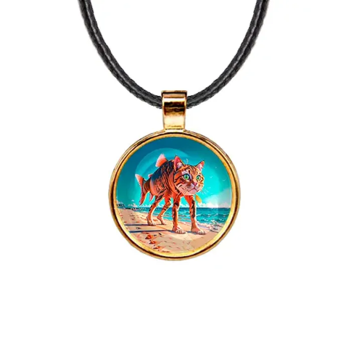 Материал и изготовление: Бижутерный сплав с покрытием под золото, выпуклая стеклянная линза, застёжка типа лобстер.