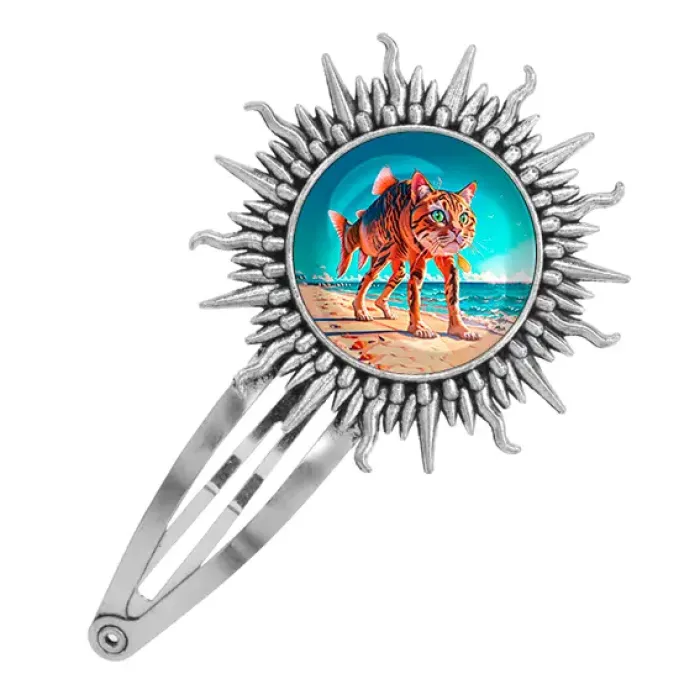 Заколка для волос из бижутерного сплава с серебристым покрытием и декоративной стеклянной вставкой.