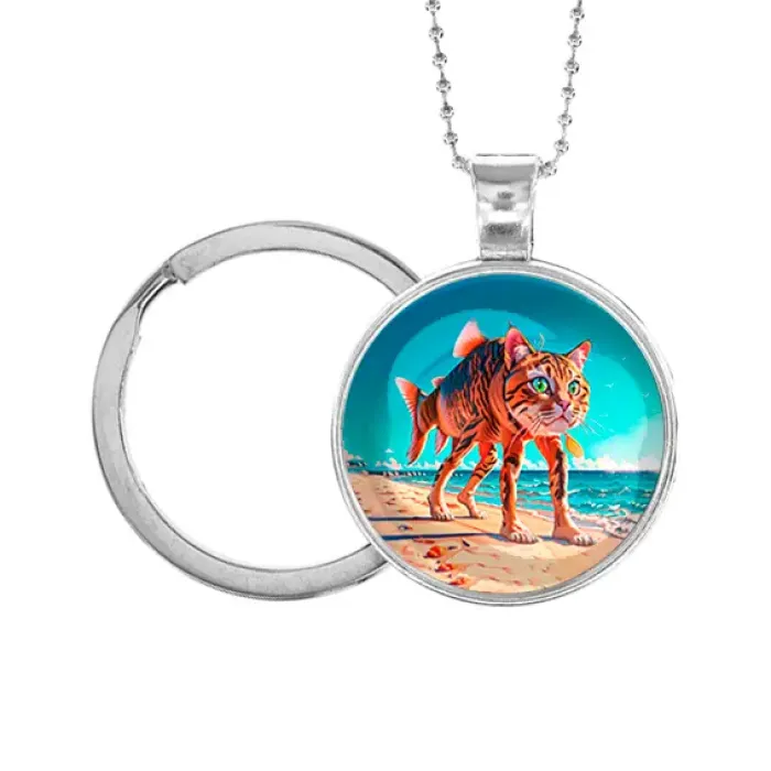 Кулон-брелок из бижутерного сплава с покрытием под серебро и стеклянной линзой.