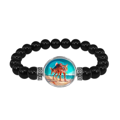 Стрейч-браслет из натурального черного агата с декоративным элементом под стеклянной линзой.