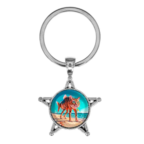 Брелок в форме звезды из бижутерного сплава под серебро со стеклянной линзой.