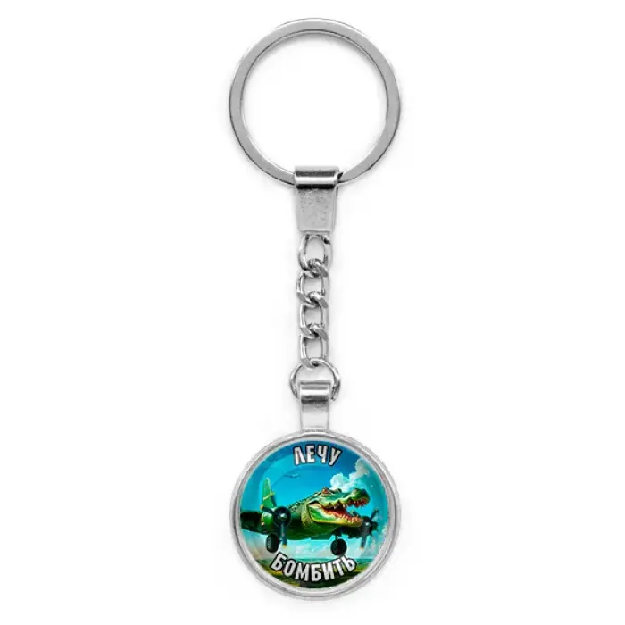Круглый брелок, цвет серебро, с цепочкой, Крокодило Бомбардиро M0114022