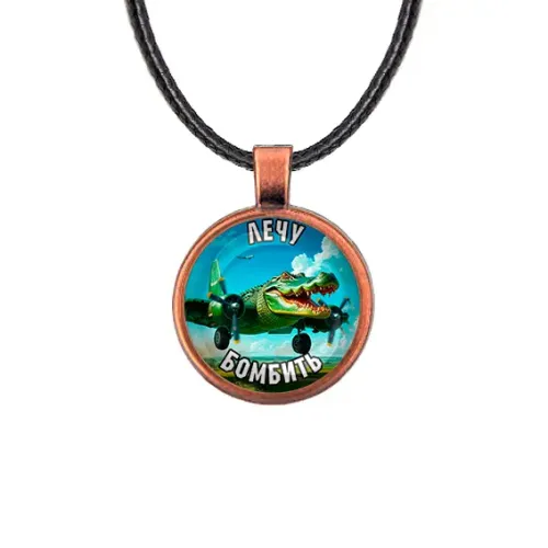 Кулон из бижутерного сплава с покрытием под медь и стеклянной линзой, модель «Крокодило Бомбардиро».
