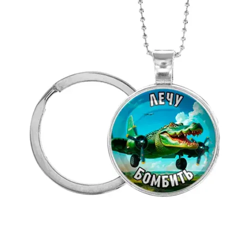 Кулон-брелок, цвет серебро, с цепочкой и кольцом, Крокодило Бомбардиро M0114054