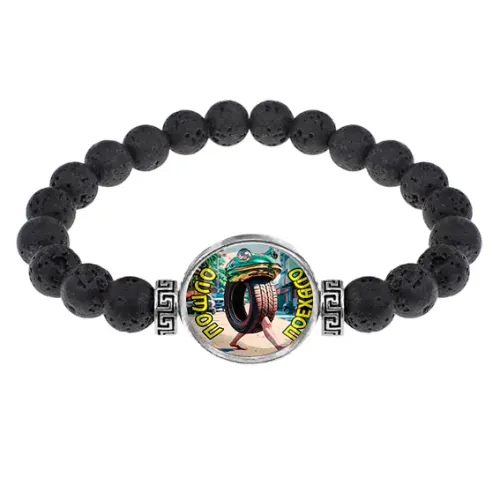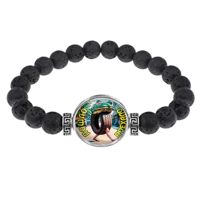 Стрейч-браслет из натуральной лавы с изображением под выпуклой стеклянной линзой.
