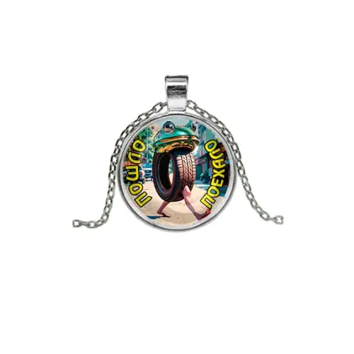 Кулон из бижутерного сплава с серебристым покрытием и стеклянной линзой, в комплекте с цепочкой.