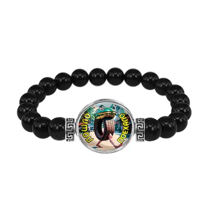 Стрейч-браслет из натурального черного агата с декоративным элементом под стеклянной линзой.