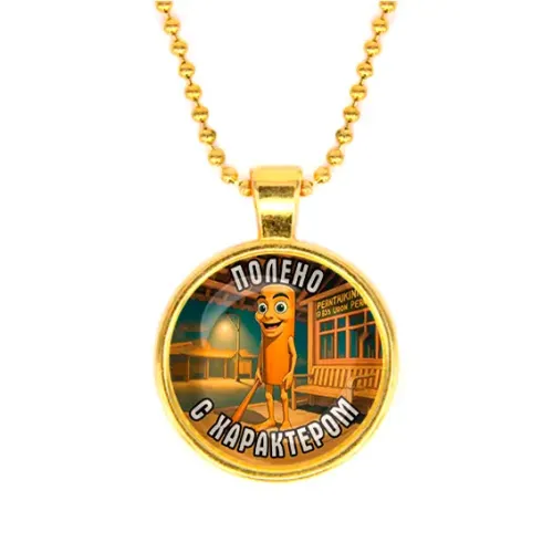 Материал и изготовление: Бижутерный сплав с покрытием под золото, стекло. Застёжка типа лобстер. Изображение защищено выпуклой стеклянной линзой.