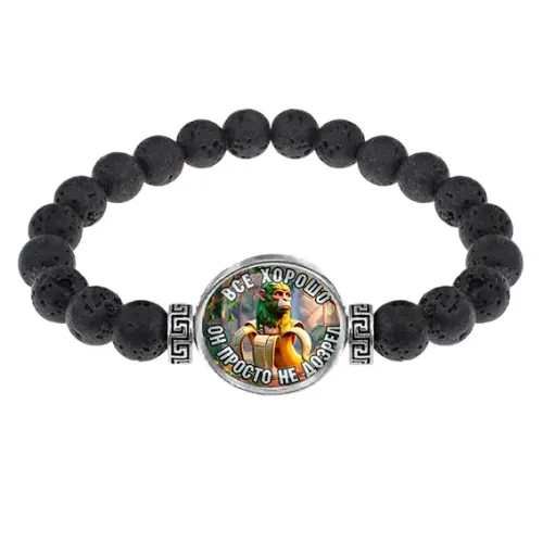 Стрейч-браслет из натуральной лавы с изображением под выпуклой стеклянной линзой.