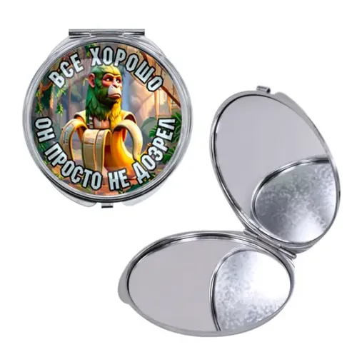 Круглое складное зеркало с полноцветной печатью на металле.