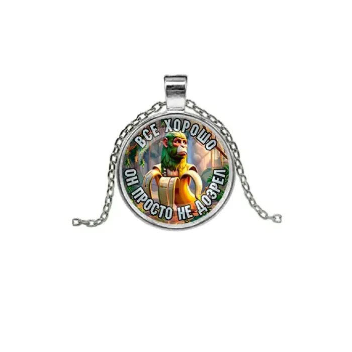 Кулон из бижутерного сплава с покрытием под серебро и стеклянной линзой, в комплекте с цепочкой.